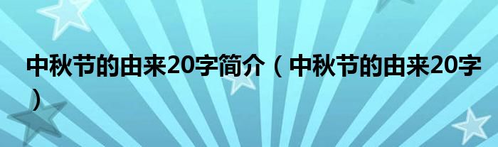 大家好,小式来为大家解答以上的问题。中秋节的由来20字简介,中秋节的由来20字这个很多人还不知道,现在让我们一起来看看吧!