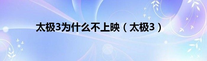 大家好,小式来为大家解答以上的问题。太极3为什么不上映,太极3这个很多人还不知道,现在让我们一起来看看吧!