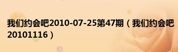大家好,小式来为大家解答以上的问题。我们约会吧2010-07-25第47期,我们约会吧20101116这个很多人还不知道,现在让我们一起来看看吧!1、王心凌——爱情加油。本文到此分享完毕,希望对大家有所帮助。