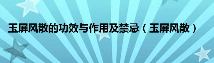 大家好,小式来为大家解答以上的问题。玉屏风散的功效与作用及禁忌,玉屏风散这个很多人还不知道,现在让我们一起来看看吧!