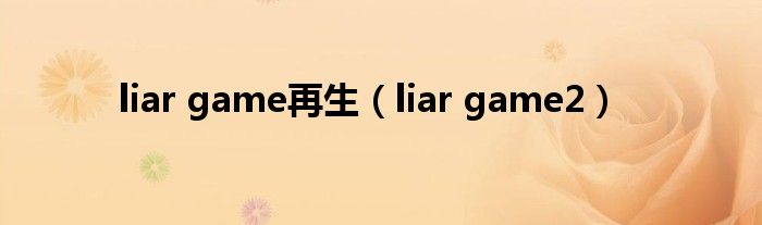 大家好,小式来为大家解答以上的问题。liar game再生,liar game2这个很多人还不知道,现在让我们一起来看看吧!