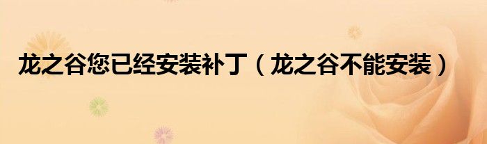 大家好,小式来为大家解答以上的问题。龙之谷您已经安装补丁,龙之谷不能安装这个很多人还不知道,现在让我们一起来看看吧!