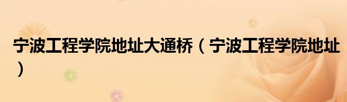 大家好,小式来为大家解答以上的问题。宁波工程学院地址大通桥,宁波工程学院地址这个很多人还不知道,现在让我们一起来看看吧!