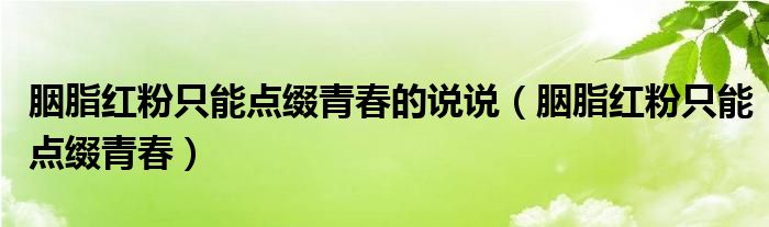 大家好,小式来为大家解答以上的问题。胭脂红粉只能点缀青春的说说,胭脂红粉只能点缀青春这个很多人还不知道,现在让我们一起来看看吧!