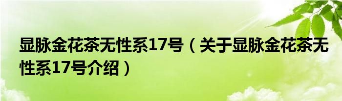1、 显脉金花茶无性系17号是一种山茶科、山茶属植物。