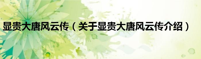 大家好,小夏来为大家解答以上的问题。显贵大唐风云传,关于显贵大唐风云传介绍这个很多人还不知道,现在让我们一起来看看吧!