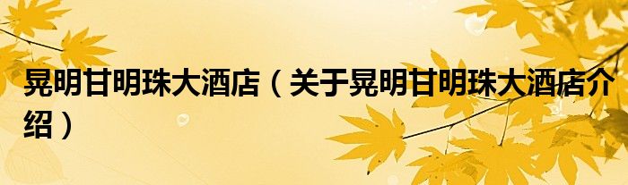 关于晃明甘明珠大酒店到此分享完毕,希望能帮助到您。