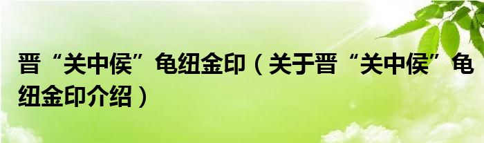 关于晋“关中侯”龟纽金印到此分享完毕,希望能帮助到您。