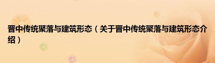 关于晋中传统聚落与建筑形态到此分享完毕,希望能帮助到您。