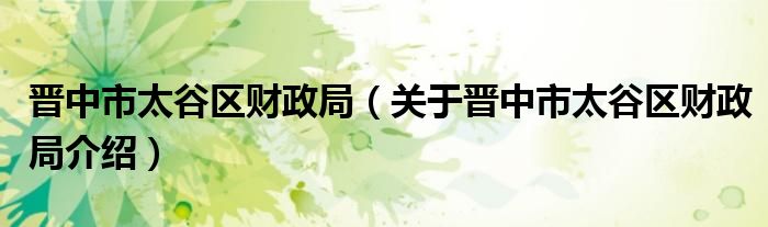 1、 晋中市太谷区财政局是晋中市太谷区政府职能部门,正科级建制。