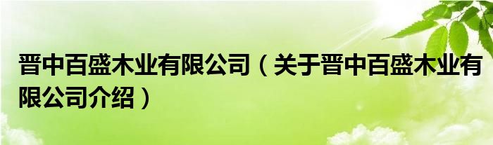 关于晋中百盛木业有限公司到此分享完毕,希望能帮助到您。