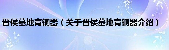 大家好,小夏来为大家解答以上的问题。晋侯墓地青铜器,关于晋侯墓地青铜器介绍这个很多人还不知道,现在让我们一起来看看吧!