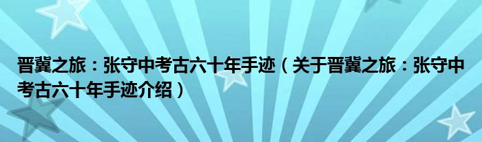 关于晋冀之旅:张守中考古六十年手迹到此分享完毕,希望能帮助到您。
