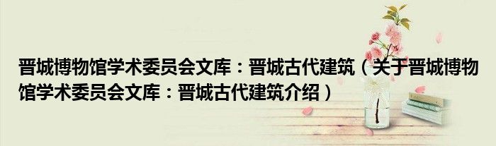 关于晋城博物馆学术委员会文库:晋城古代建筑到此分享完毕,希望能帮助到您。