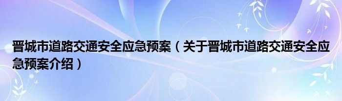 大家好,小夏来为大家解答以上的问题。晋城市道路交通安全应急预案,关于晋城市道路交通安全应急预案介绍这个很多人还不知道,现在让我们一起来看看吧!