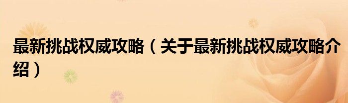 大家好,小夏来为大家解答以上的问题。最新挑战权威攻略,关于最新挑战权威攻略介绍这个很多人还不知道,现在让我们一起来看看吧!
