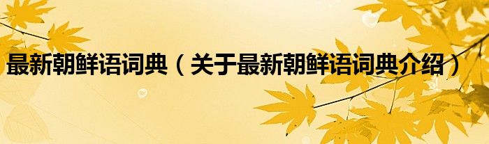 关于最新朝鲜语词典到此分享完毕,希望能帮助到您。