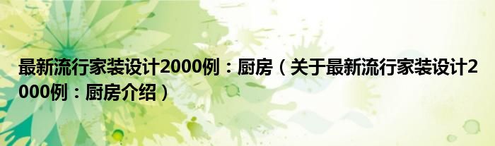 关于最新流行家装设计2000例:厨房到此分享完毕,希望能帮助到您。