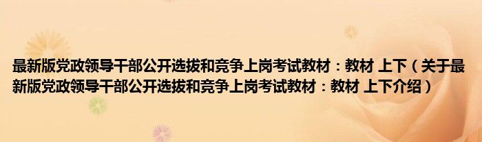 关于最新版党政领导干部公开选拔和竞争上岗考试教材:教材 上下到此分享完毕,希望能帮助到您。