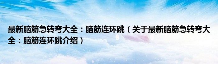 大家好,小夏来为大家解答以上的问题。最新脑筋急转弯大全:脑筋连环跳,关于最新脑筋急转弯大全:脑筋连环跳介绍这个很多人还不知道,现在让我们一起来看看吧!