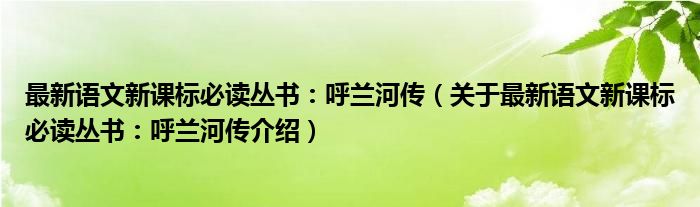 关于最新语文新课标必读丛书:呼兰河传到此分享完毕,希望能帮助到您。