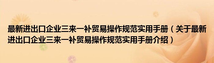 关于最新进出口企业三来一补贸易操作规范实用手册到此分享完毕,希望能帮助到您。