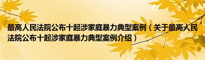 大家好,小夏来为大家解答以上的问题。最高人民法院公布十起涉家庭暴力典型案例,关于最高人民法院公布十起涉家庭暴力典型案例介绍这个很多人还不知道,现在让我们一起来看看吧!