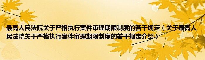 关于最高人民法院关于严格执行案件审理期限制度的若干规定到此分享完毕,希望能帮助到您。