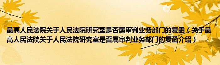 关于最高人民法院关于人民法院研究室是否属审判业务部门的复函到此分享完毕,希望能帮助到您。