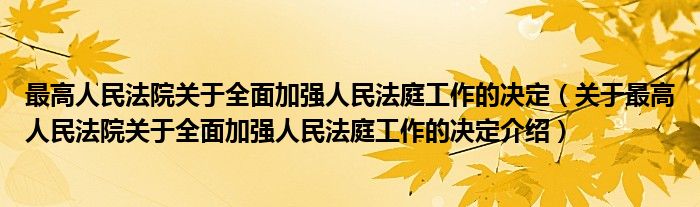 大家好,小夏来为大家解答以上的问题。最高人民法院关于全面加强人民法庭工作的决定,关于最高人民法院关于全面加强人民法庭工作的决定介绍这个很多人还不知道,现在让我们一起来看看吧!