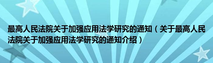 关于最高人民法院关于加强应用法学研究的通知到此分享完毕,希望能帮助到您。