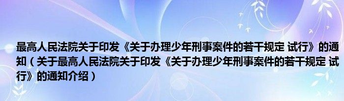 关于最高人民法院关于印发《关于办理少年刑事案件的若干规定 试行》的通知到此分享完毕,希望能帮助到您。