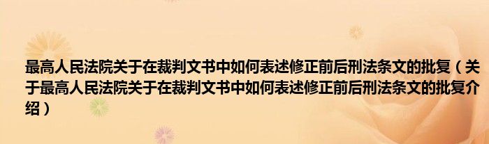 大家好,小夏来为大家解答以上的问题。最高人民法院关于在裁判文书中如何表述修正前后刑法条文的批复,关于最高人民法院关于在裁判文书中如何表述修正前后刑法条文的批复介绍这个很多人还不知道,现在让我们一起来看看吧!