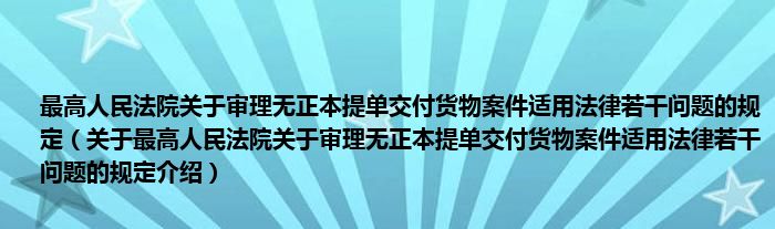 1、 最高人民法院关于审理无正本提单交付货物案件适用法律若干问题的规定》已于2009年2月16日由最高人民法院审判委员会第1463次会议通过。