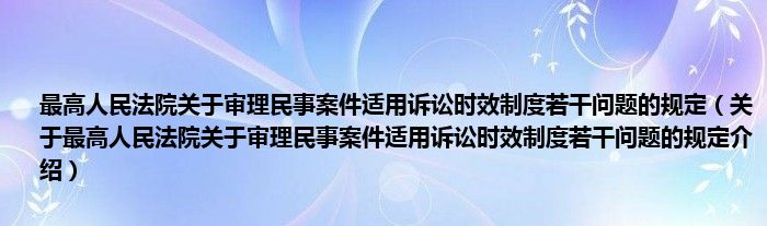 关于最高人民法院关于审理民事案件适用诉讼时效制度若干问题的规定到此分享完毕,希望能帮助到您。