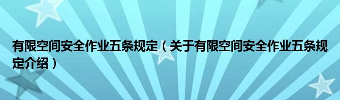 关于有限空间安全作业五条规定到此分享完毕,希望能帮助到您。