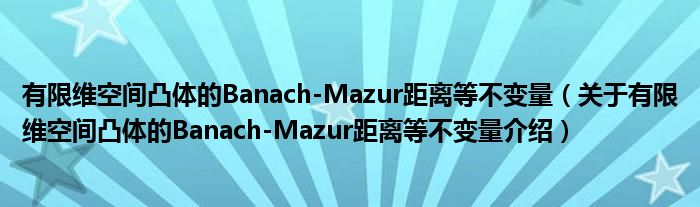 大家好,小夏来为大家解答以上的问题。有限维空间凸体的Banach-Mazur距离等不变量,关于有限维空间凸体的Banach-Mazur距离等不变量介绍这个很多人还不知道,现在让我们一起来看看吧!