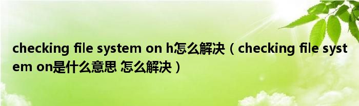 大家好,我是小根根,我来为大家解答以上问题。checking file system on h怎么解决,checking file system on是什么意思 怎么解决很多人还不知道,现在让我们一起来看看吧!
